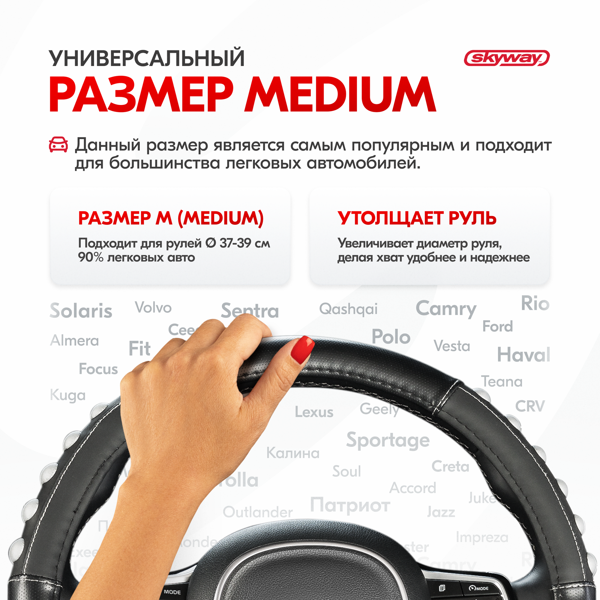 Оплетка на руль Pop It-1 SKYWAY M (37-39) черный экокожа, S01102486