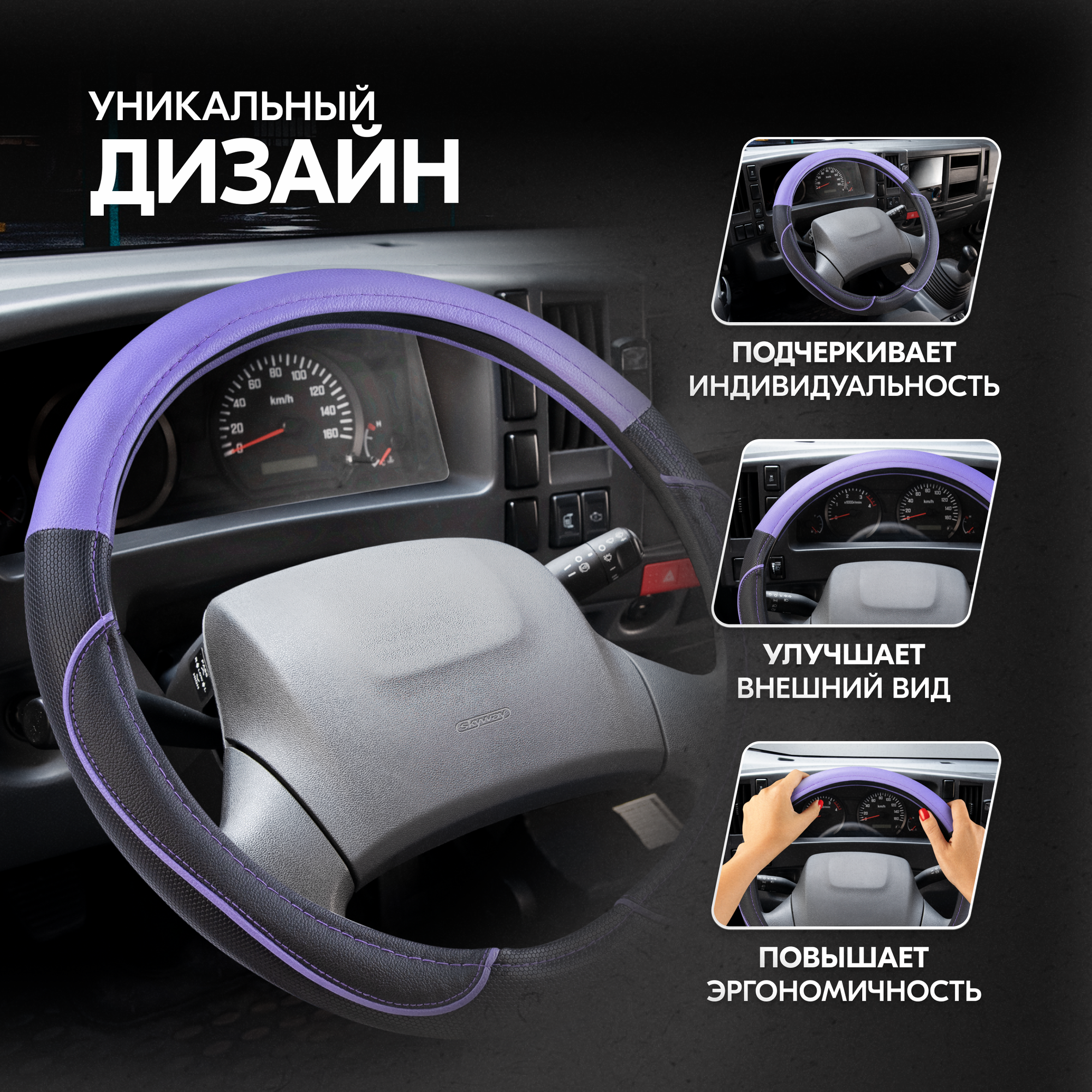 СохранитьОплетка на руль Combo-4 SKYWAY L (39-41) черный; фиолетовый экокожа, S01102397 интересное: