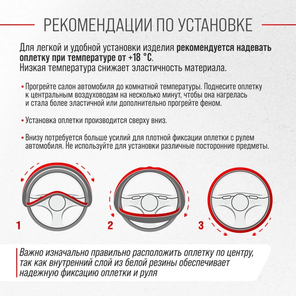 | Дополнительная информация | Рекомендации производителей: выбирайте оплётку под размер вашего рулевого колеса. Неверно выбранный размер может стать причиной проскальзывания оплётки или привести к невозможности снять или надеть её на руль. |
