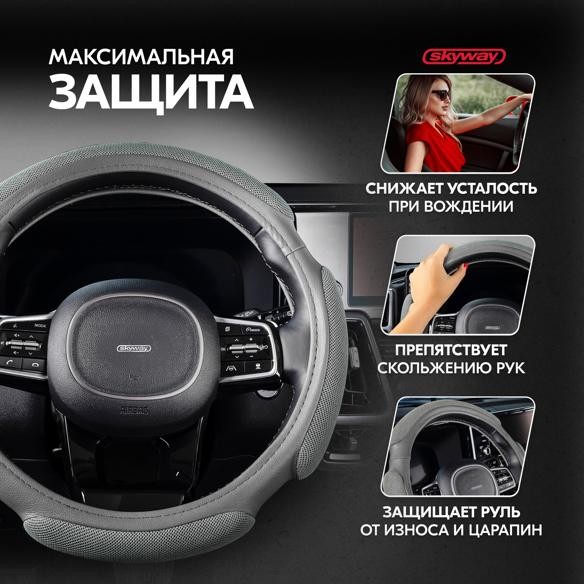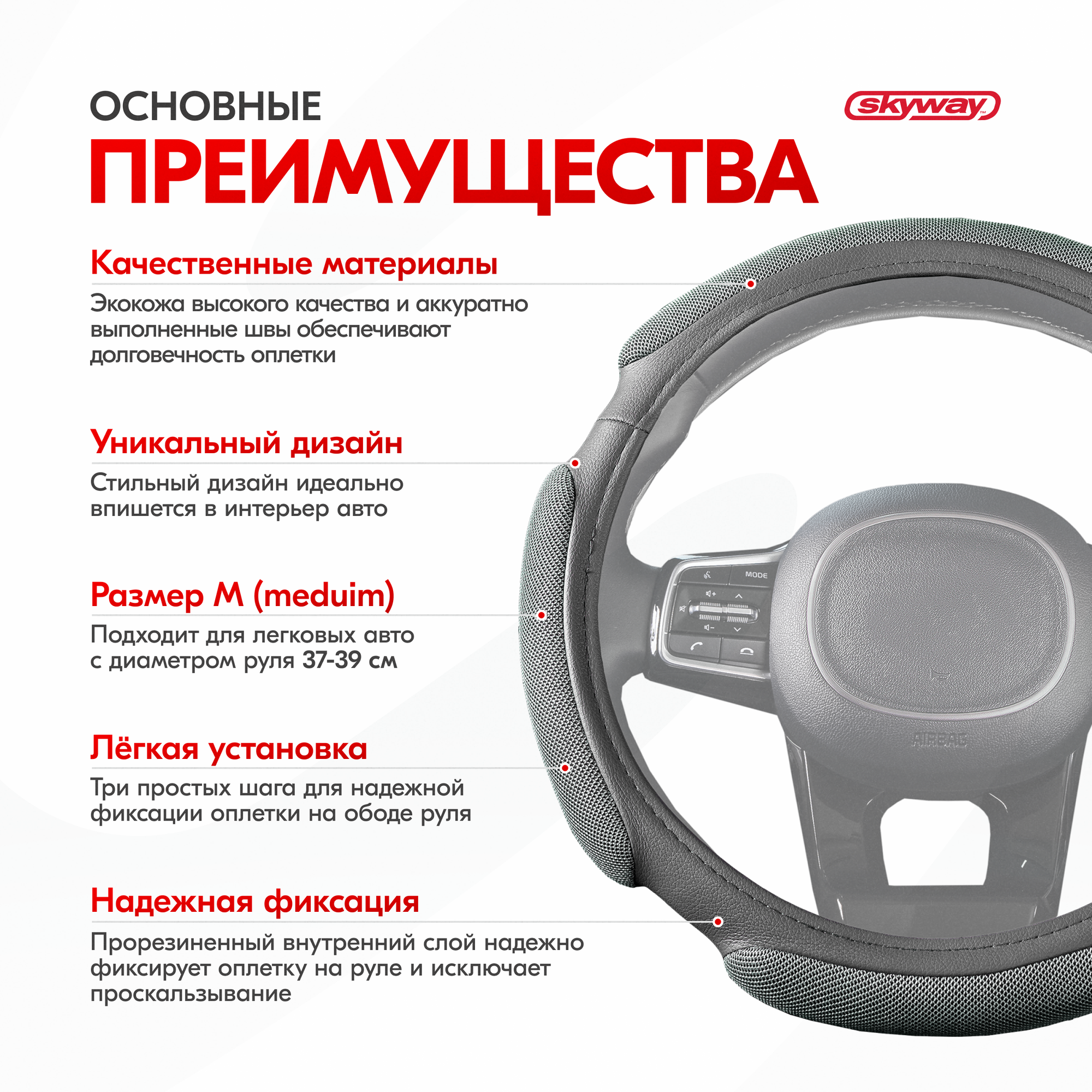 Оплётка руля Skyway S01102384 Эко кожа серый M