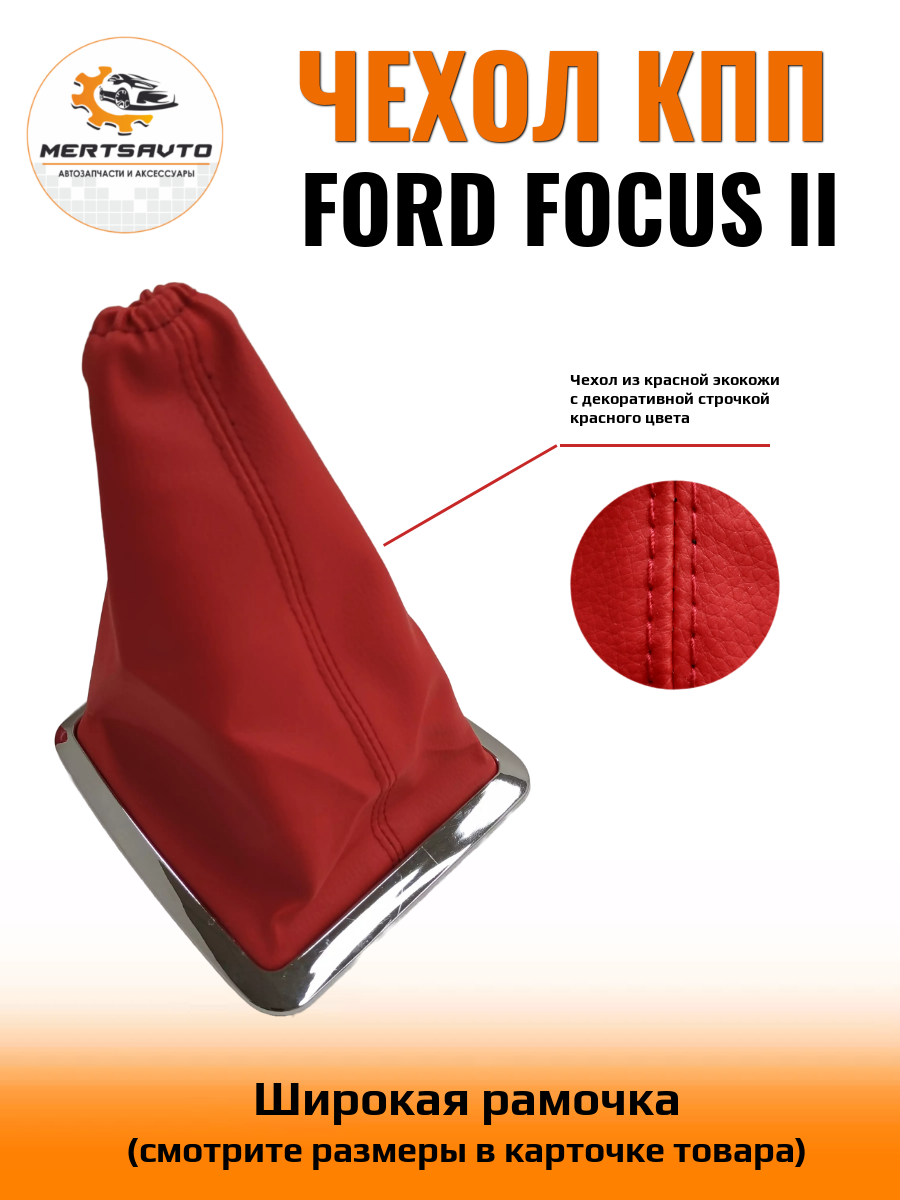 СохранитьЧехол коробки переключения передач (КПП) на Ford Focus II (Форд Фокус 2) - широкая рамка, красная с красной строчкой интересное: