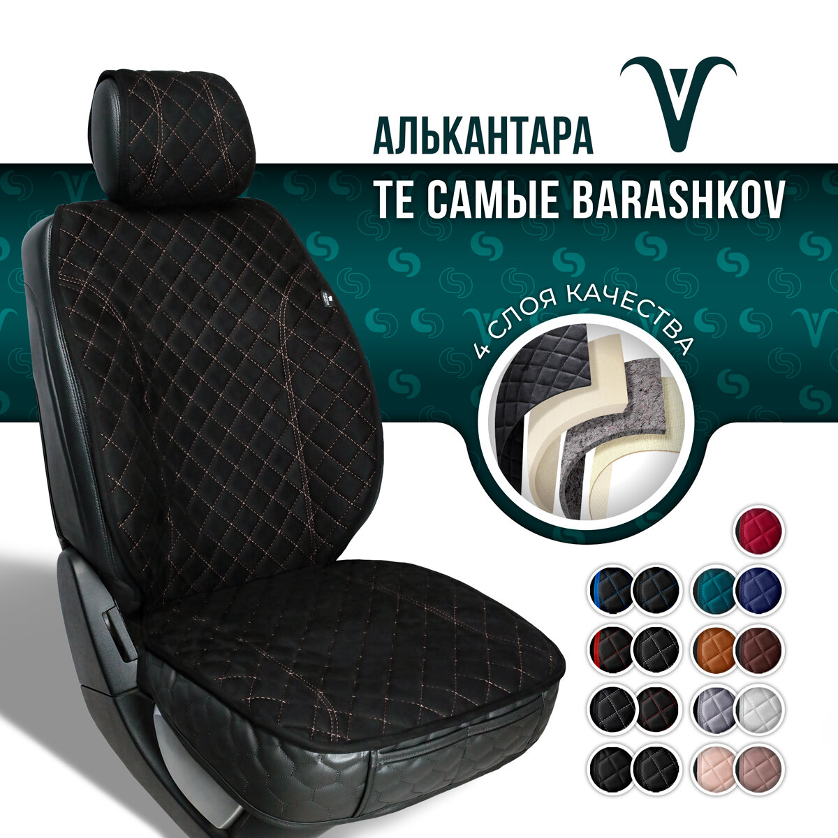 Купить BARASHKOV/ Накидка из алькантары на переднее сиденье автомобиля. Модель XL/ Черный, бежевая строчка
