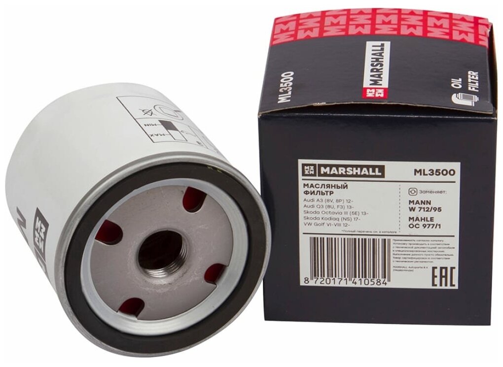 Фильтр масляный MARSHALL ML3500 для Audi A3 12-, Audi Q3 13-, Skoda Octavia 13-, Skoda Kodiaq 17-, VW Golf 12- // кросс-номер MANN W 712/95