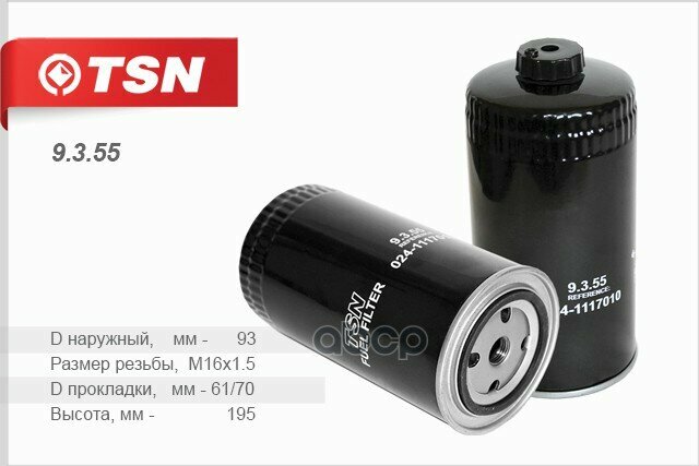 Купить 9.3.55_Фильтр Топливный Сепаратор! D93 H199 M16x15 Мтз, Маз, Зил TSN арт. 9.3.55
