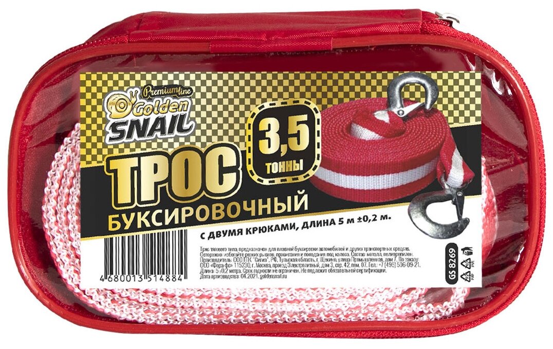 Трос Golden snail буксировочный, 3,5т 2 крюка, GS 8269 GOLDEN SNAIL GS8269 | цена за 1 шт