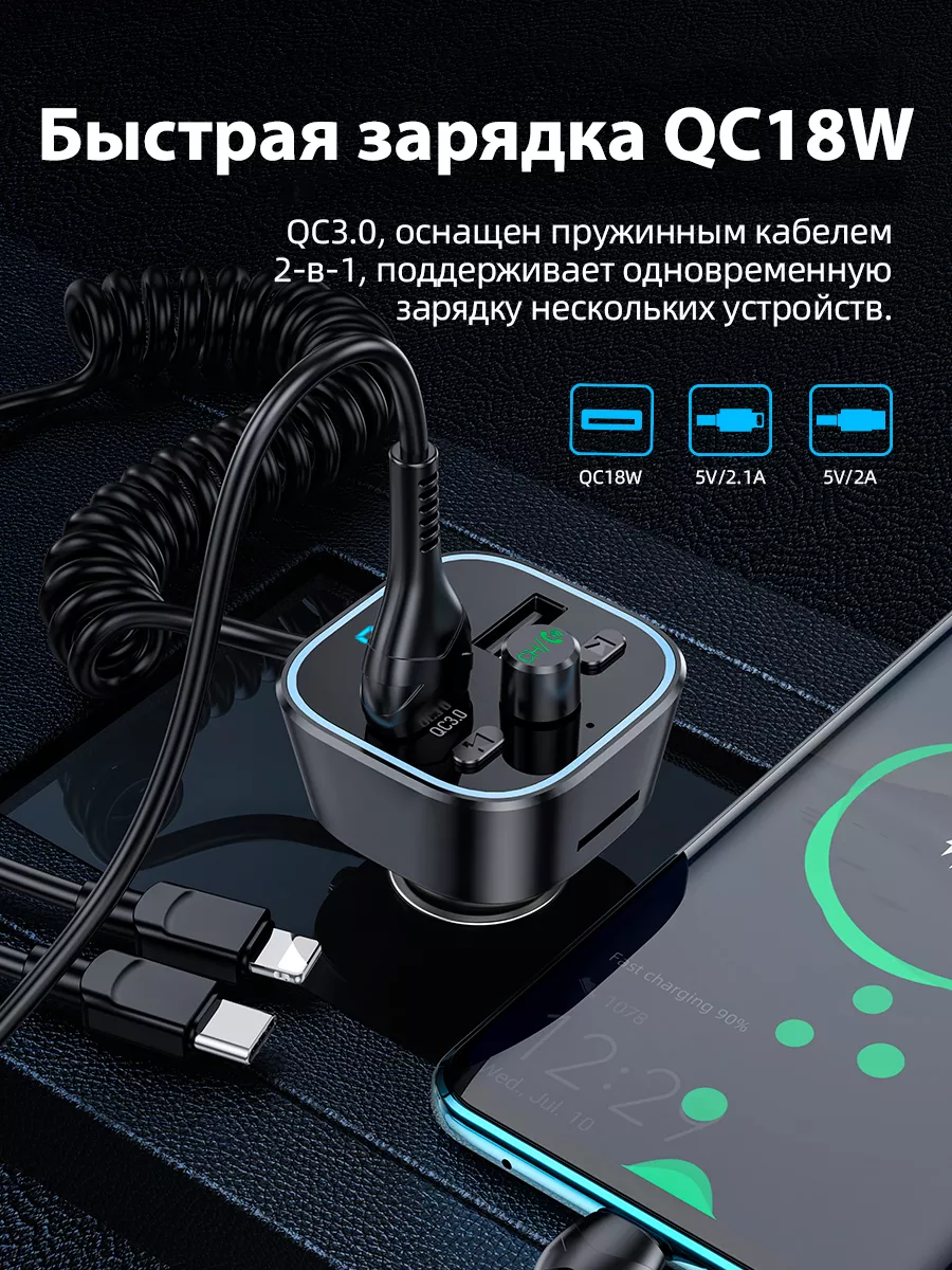 Орбита / TS-CAF120 FM-трансмиттер с bluetooth/микрофоном/ для автомобиля/ зарядник QC 3.0 для авто в прикуриватель