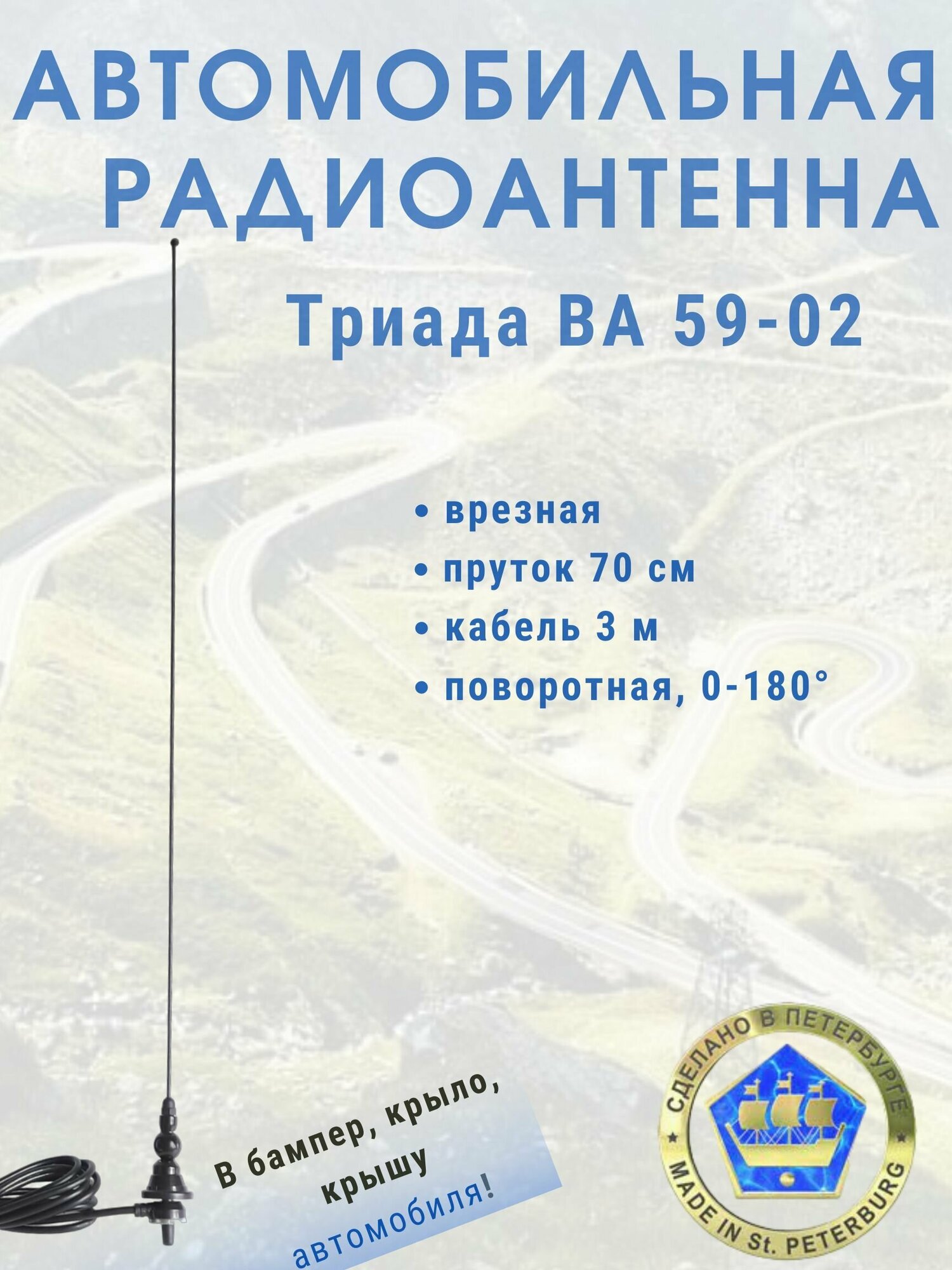 СохранитьВрезная автомобильная антенна для радио Триада 59-02 поворотная, пруток 70 см интересное: