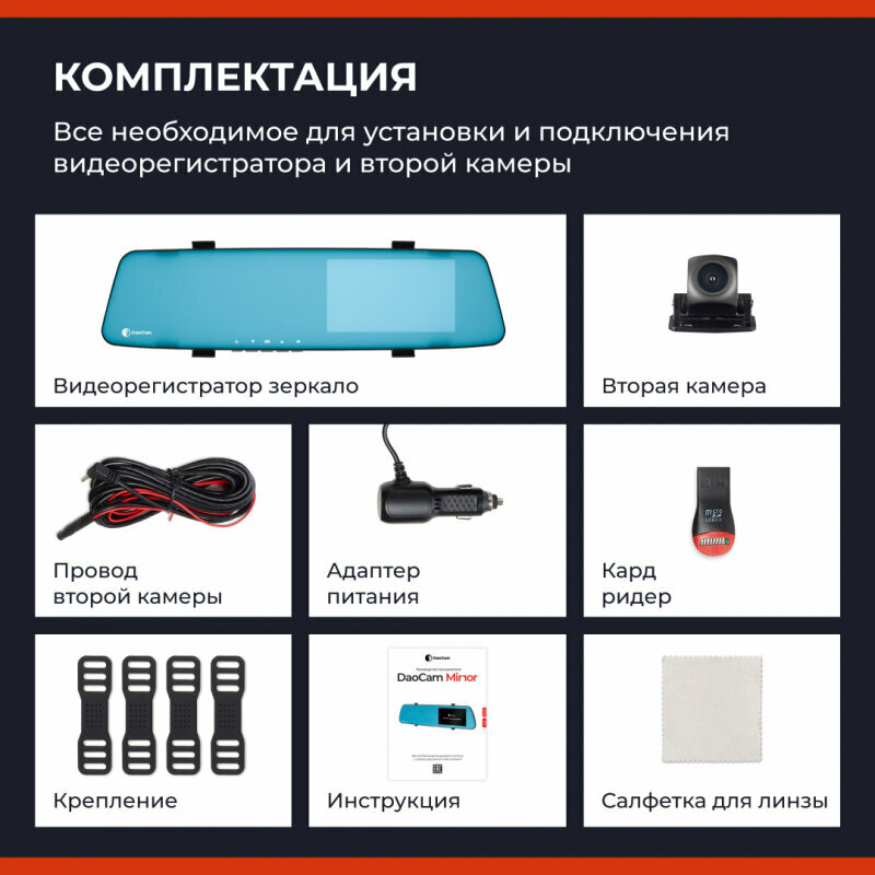 Видеорегистратор-зеркало DaoCam mirror wi-fi 1045954 интересное: