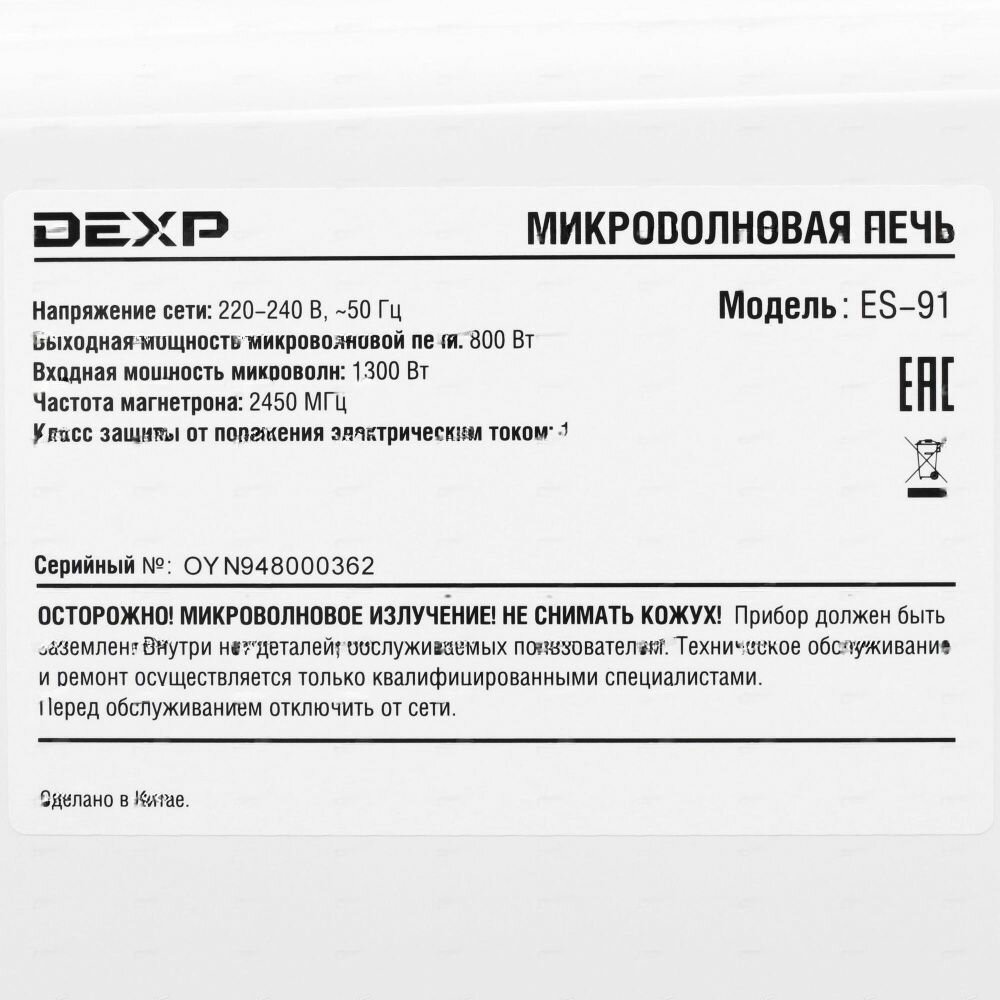 Микроволновая печь DEXP ES-91 белый интересное: