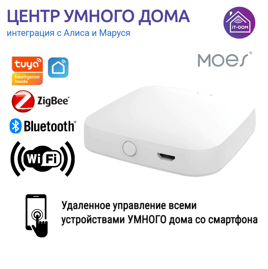Хаб для умного дома MOES MHUB, ZigBee, LAN, Wi-Fi, до 128 устройств, удаленное управление 9828668 интересное: