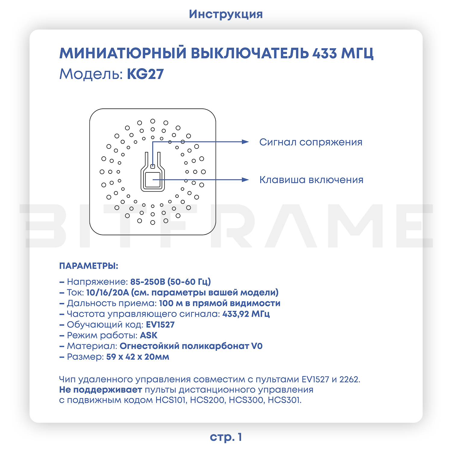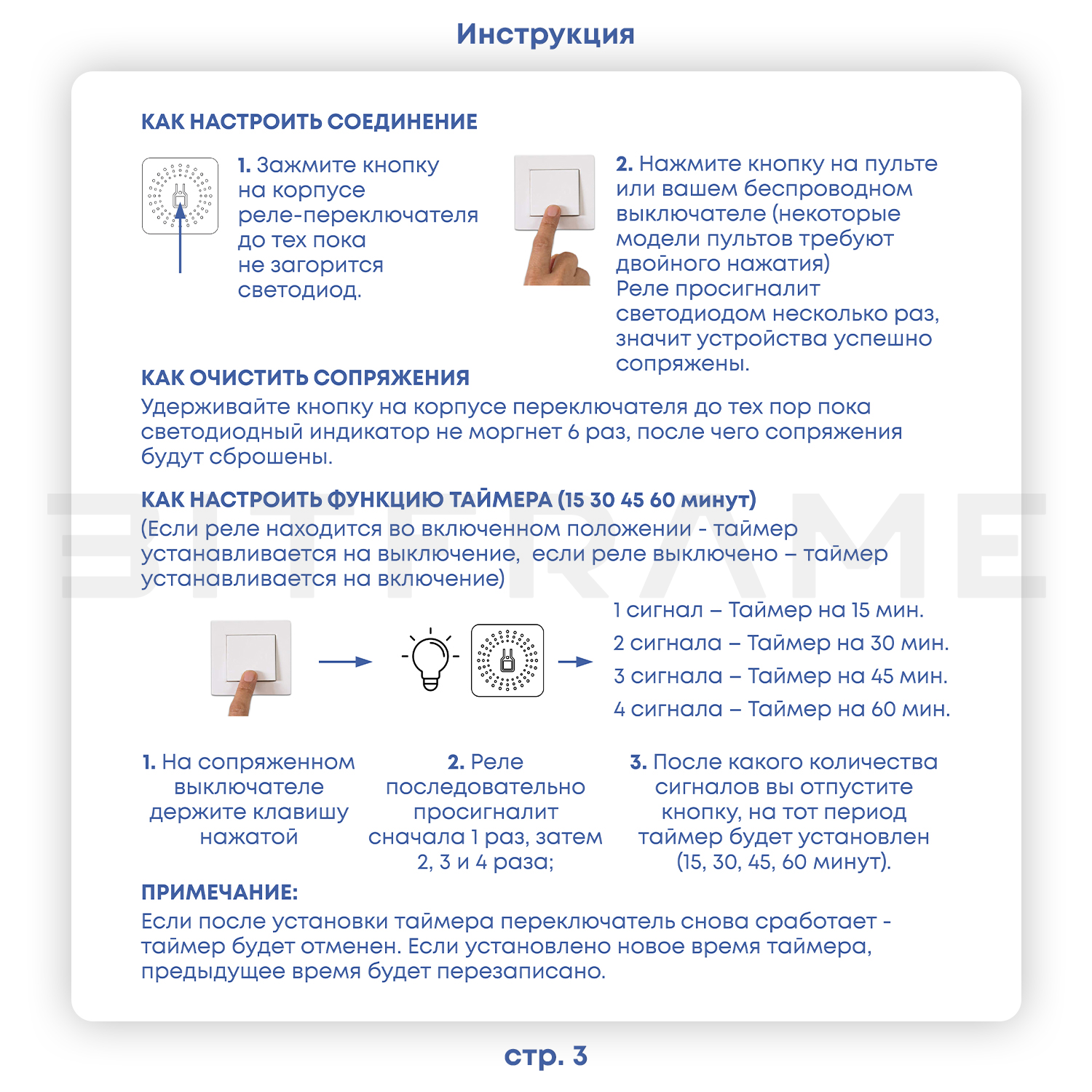 | Подробная комплектация | Радиореле - 2 шт., пульт - 1 шт. |