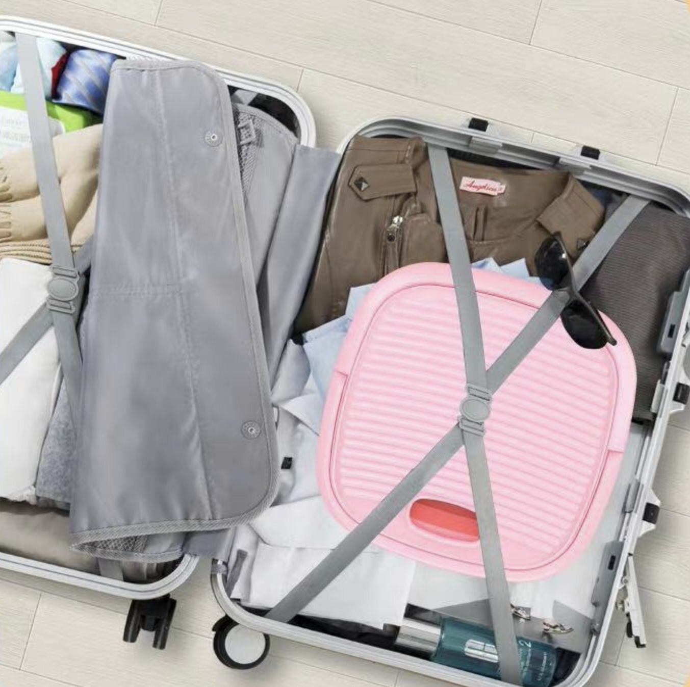 Мини стиральная машина / Стирает 1.5 кг за 10 мин / Складная портативная / Розовая