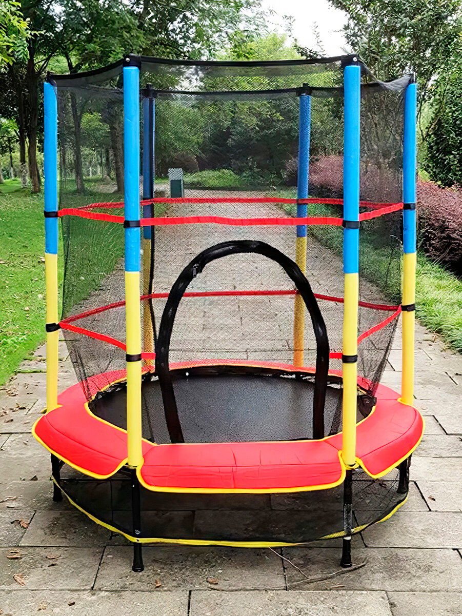 Батут детский для дома и улицы 140 см с защитной сеткой, каркасный, URM интересное: