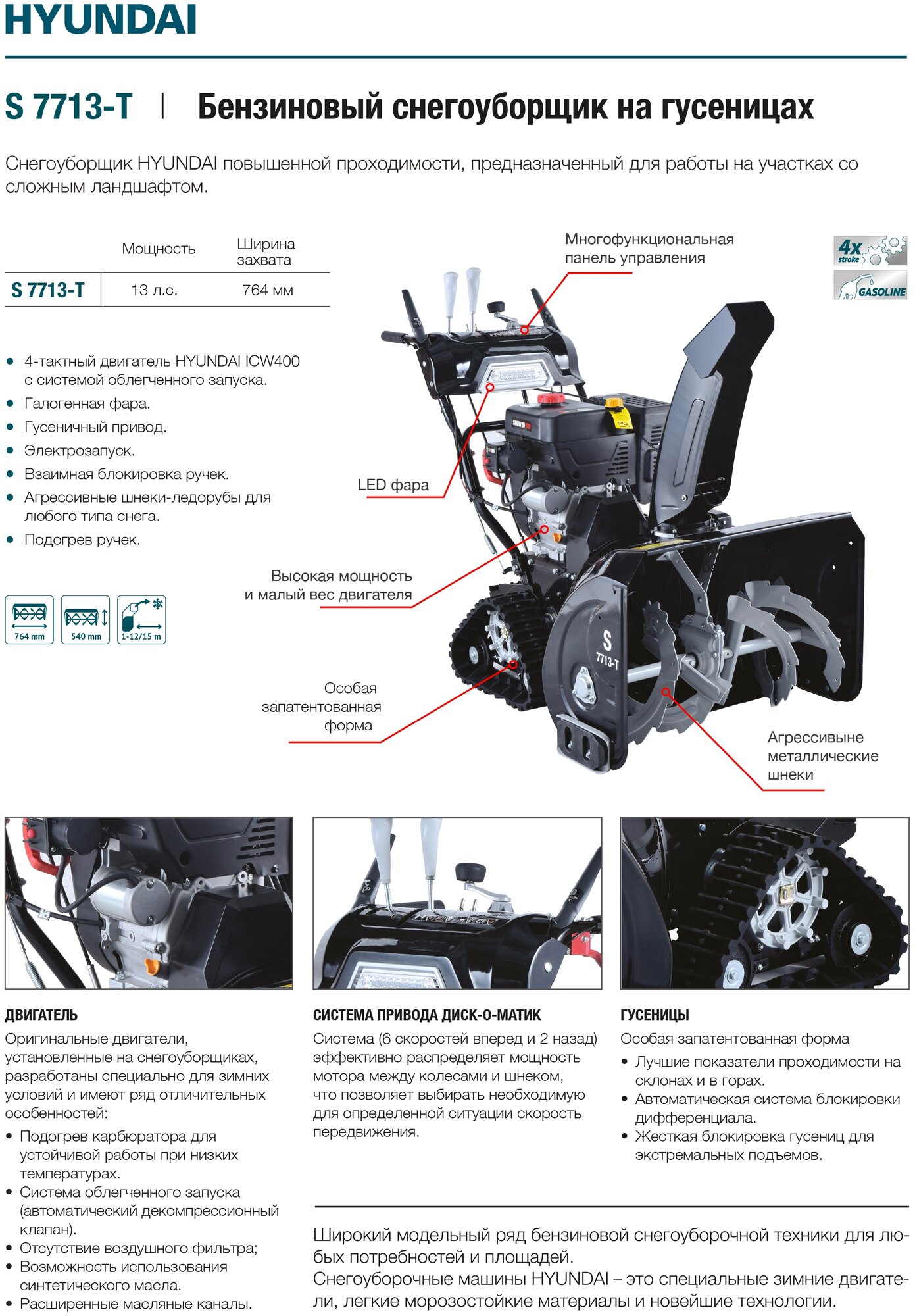 Снегоуборщик бензиновый гусеничный HYUNDAI S 7713-T