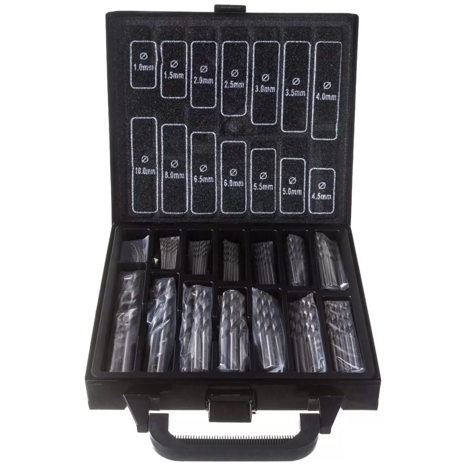 | Типоразмеры | 1 мм – 10 шт, 1.5 мм – 10 шт, 2 мм – 10 шт, 2.5 мм – 10 шт, 3 мм – 10 шт, 3.5 мм – 10 шт, 4 мм – 10 шт, 4.5 мм – 5 шт, 5 мм – 5 шт, 5.5 мм – 5 шт, 6 мм – 5 шт, 6.5 мм – 5 шт, 8 мм – 2 шт, 10 мм – 2 шт. |