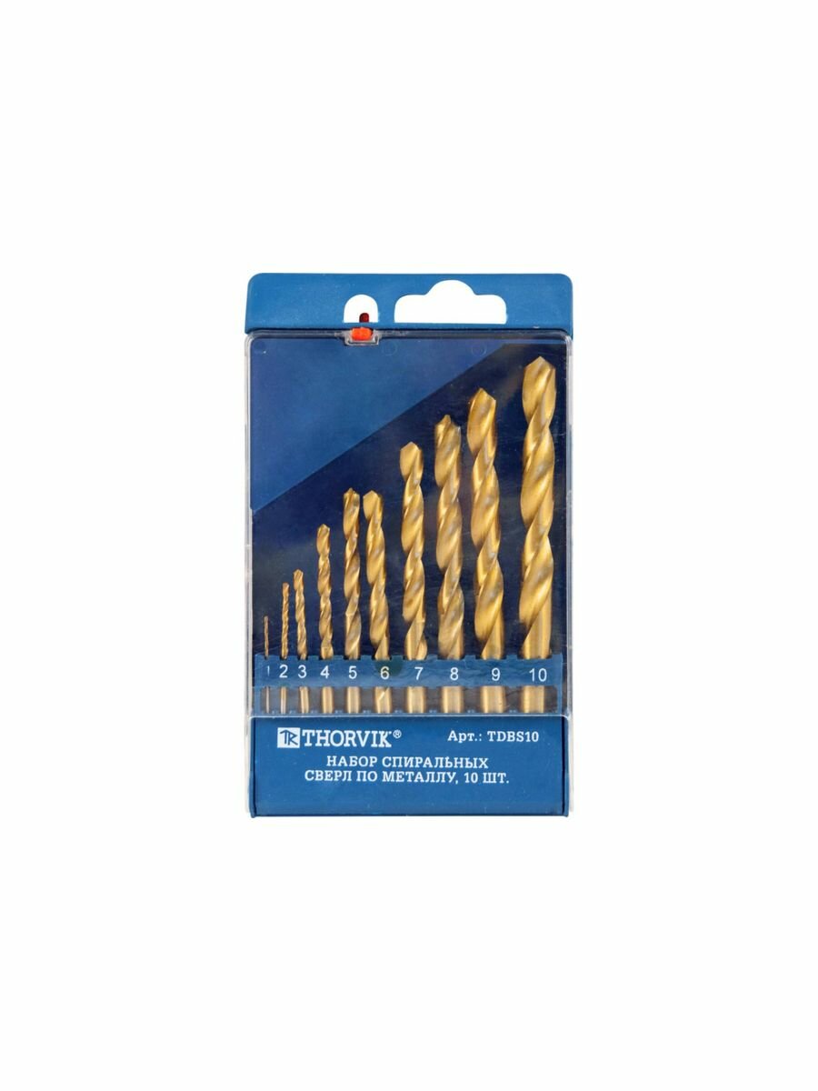 Набор сверл по металлу HSS TiN 10 шт (1,0-10,0) в пластиковом кейсе (Thorvik)