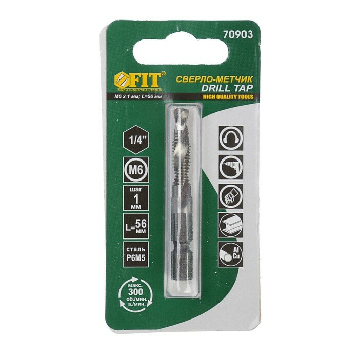 Купить FIT Сверло-Метчик комбинированное метрическое, М6х1,0 мм, 18/56 мм 70903 .