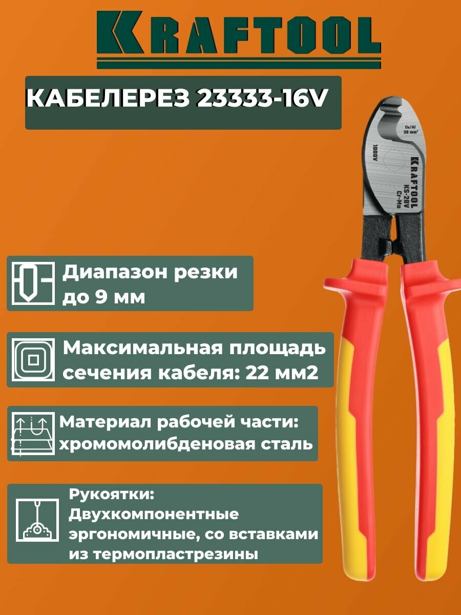 1шт. - Кабелерез KS-16V д.9 мм 160 мм / KRAFTOOL; арт. 23333-16V; оригинал / - комплект 1шт