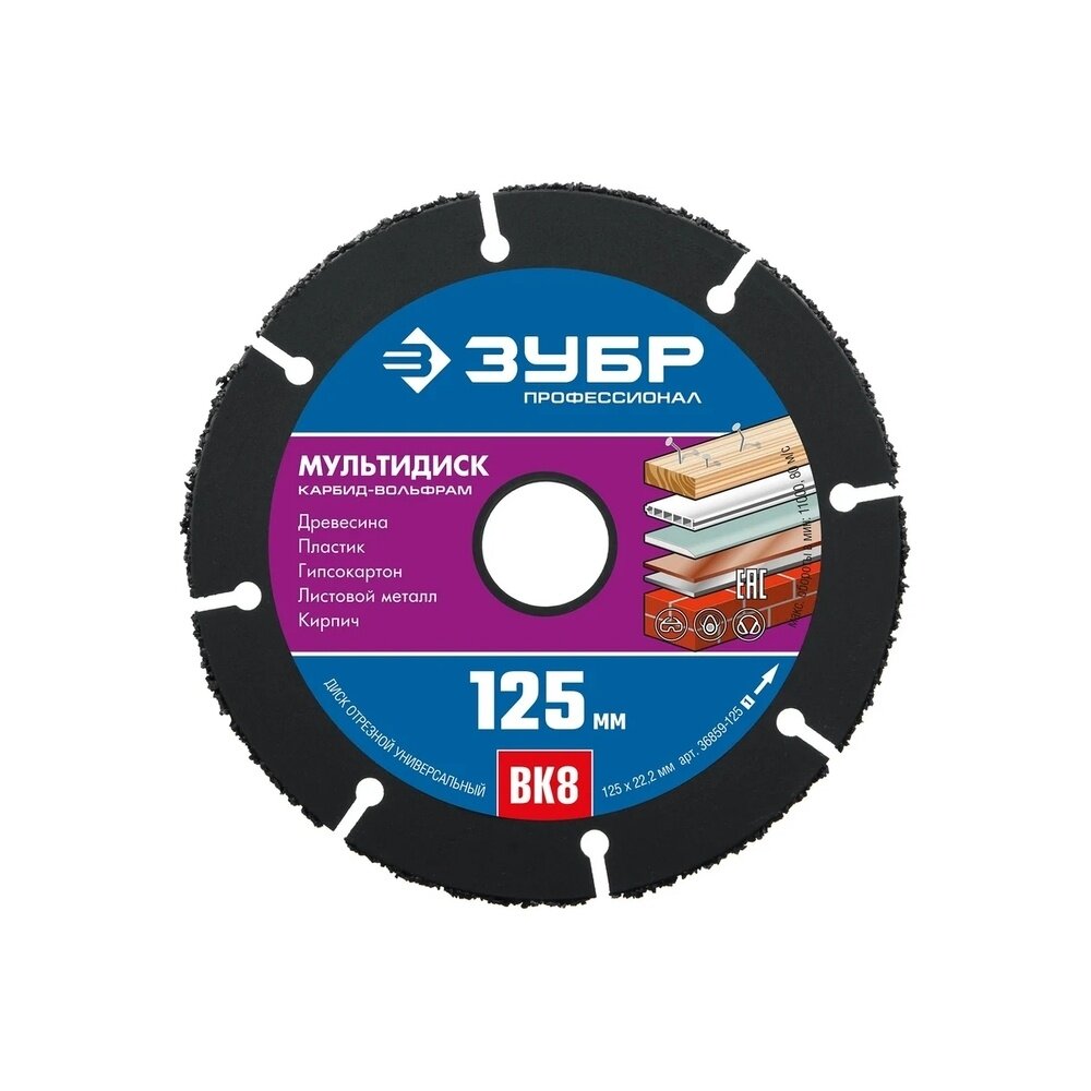 ЗУБР мультидиск 125х22,2 мм, диск отрезной по дереву для УШМ(с твердосплавным зерном), , серия Профессионал (36859-125_z01)