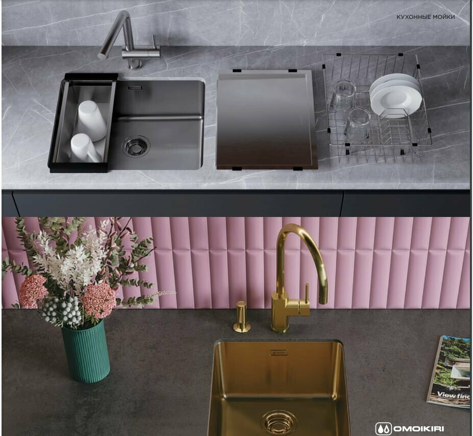| Минусы: | Царапается стальной посудой, видны капли воды, чего нет на каменных мойках |