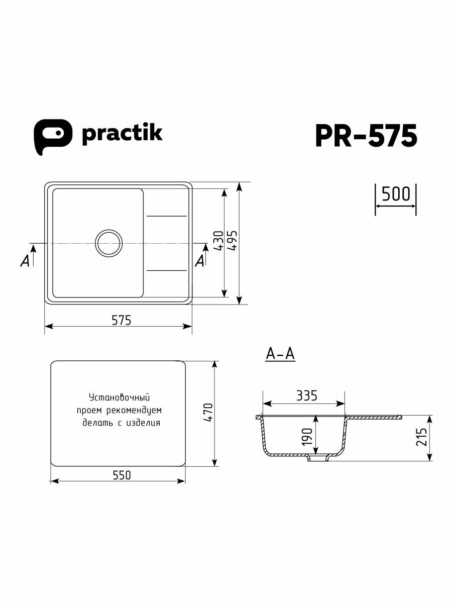 Кухонная мойка Practik PR-M-575-004 (без сифона), черный оникс интересное: