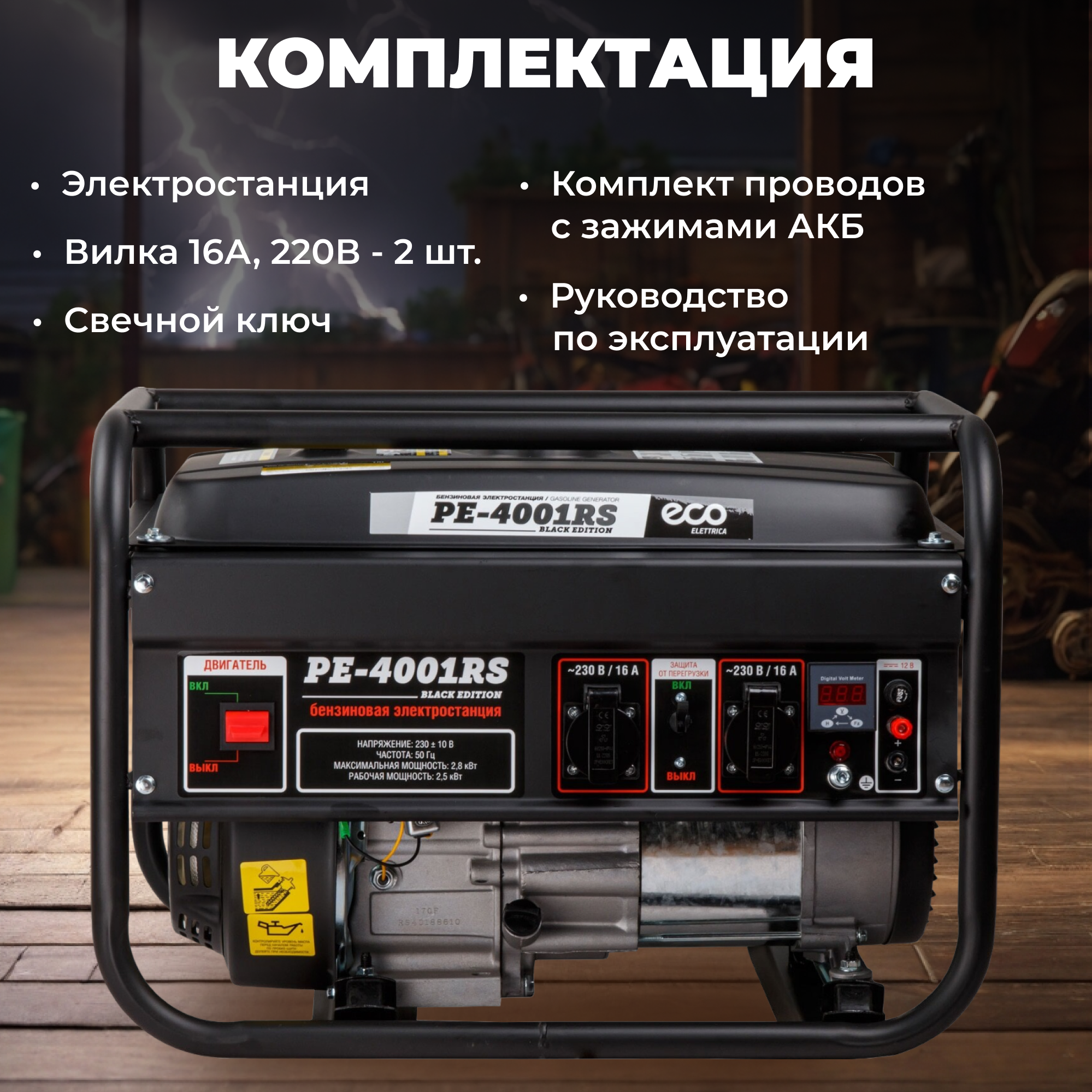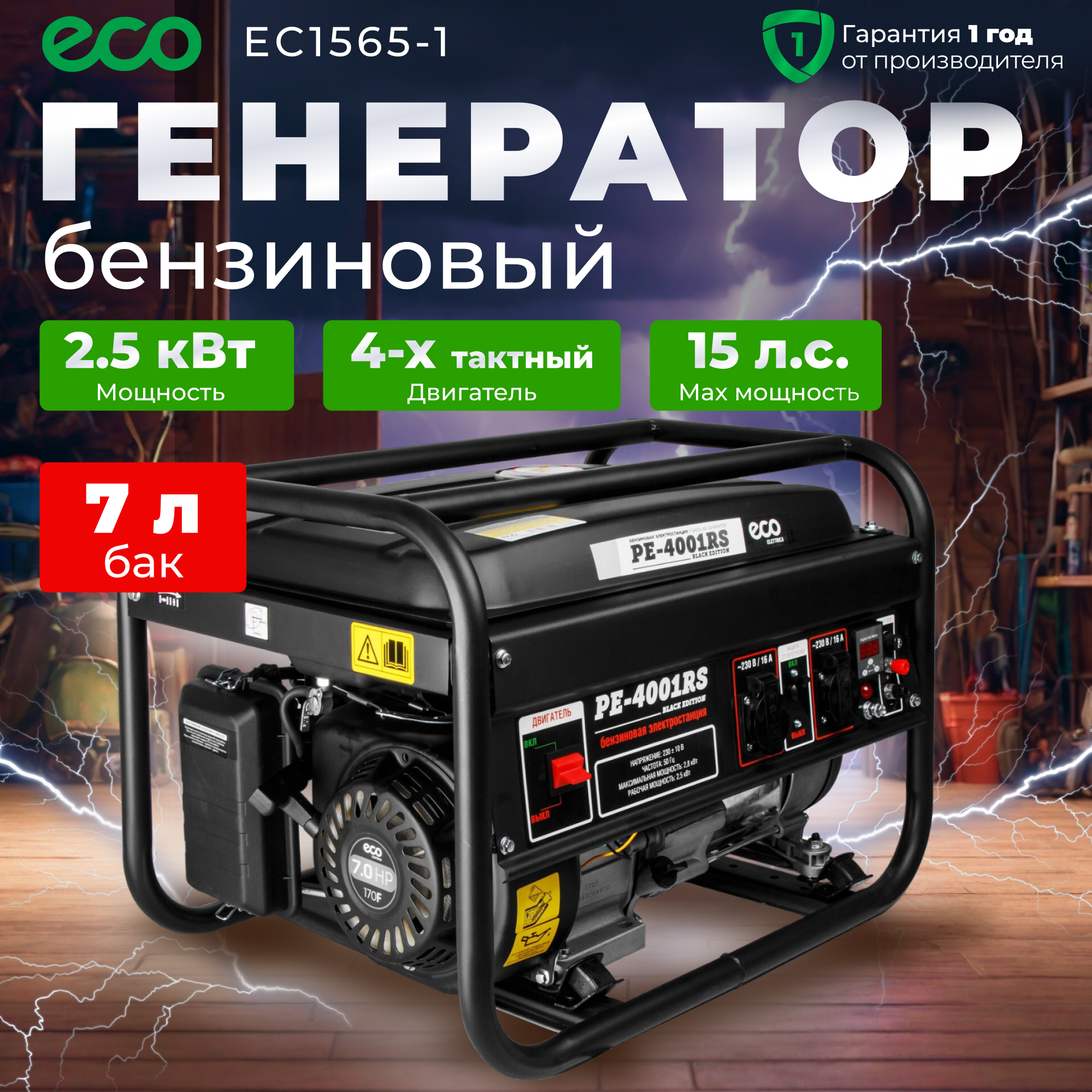 Электростанция (генератор бензиновый) ECO PE-4001RS Black Edition (EC1565-1) 2.8 кВт, 230 В, бак 15 л, вес 38 кг интересное: