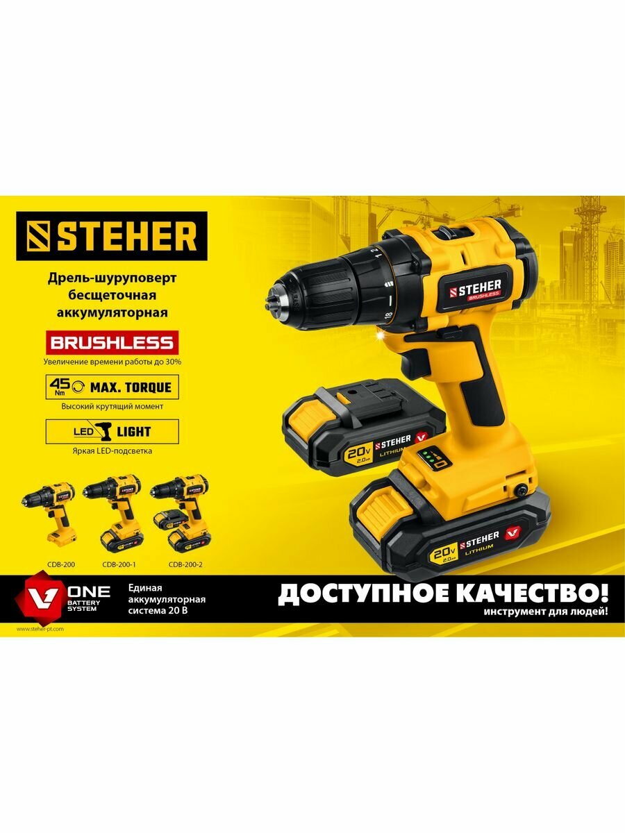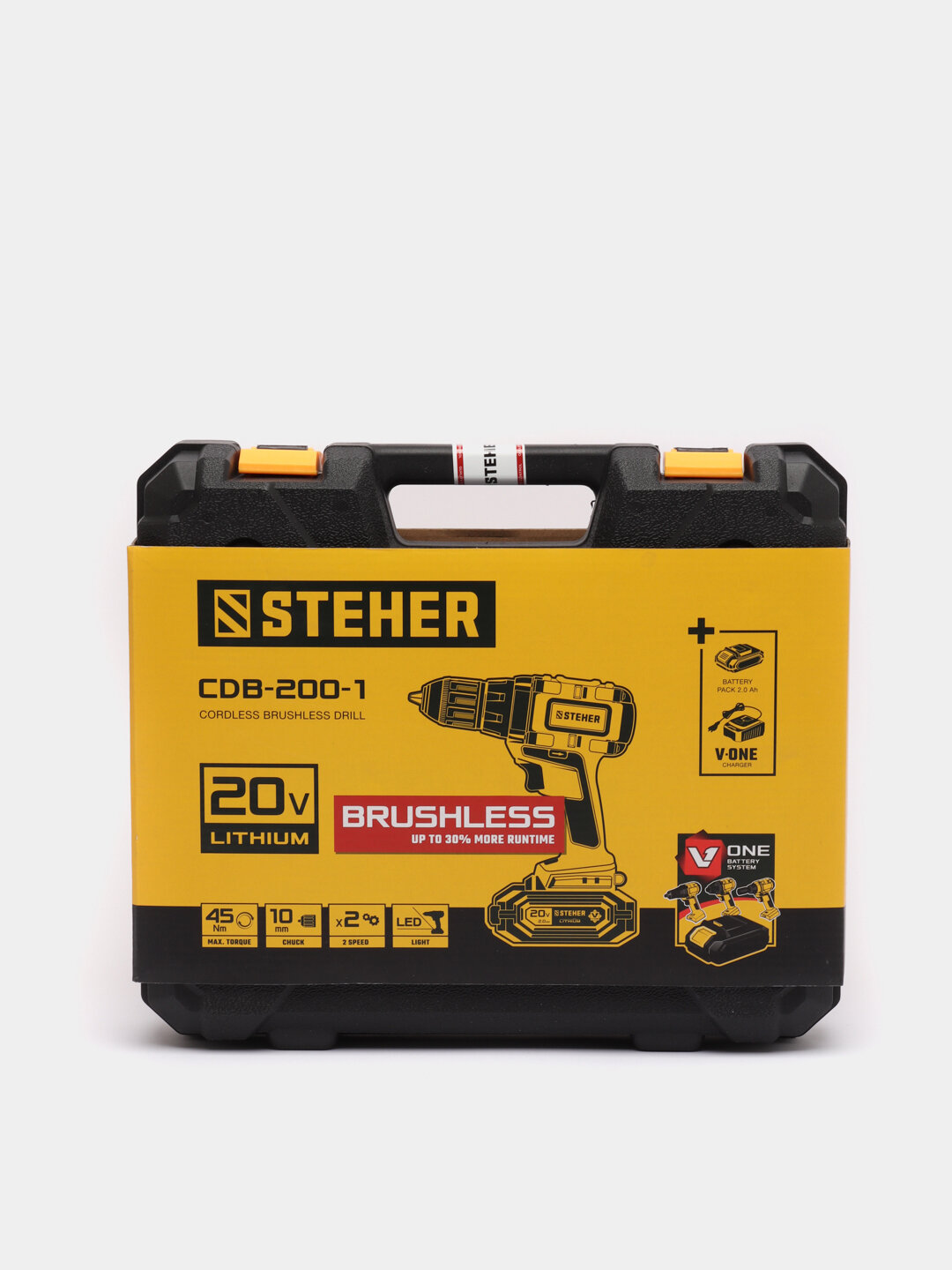 Шуруповерт аккумуляторный бесщеточный STEHER CDB-200-1 20 В, 2 АКБ (2Ач), в кейсе