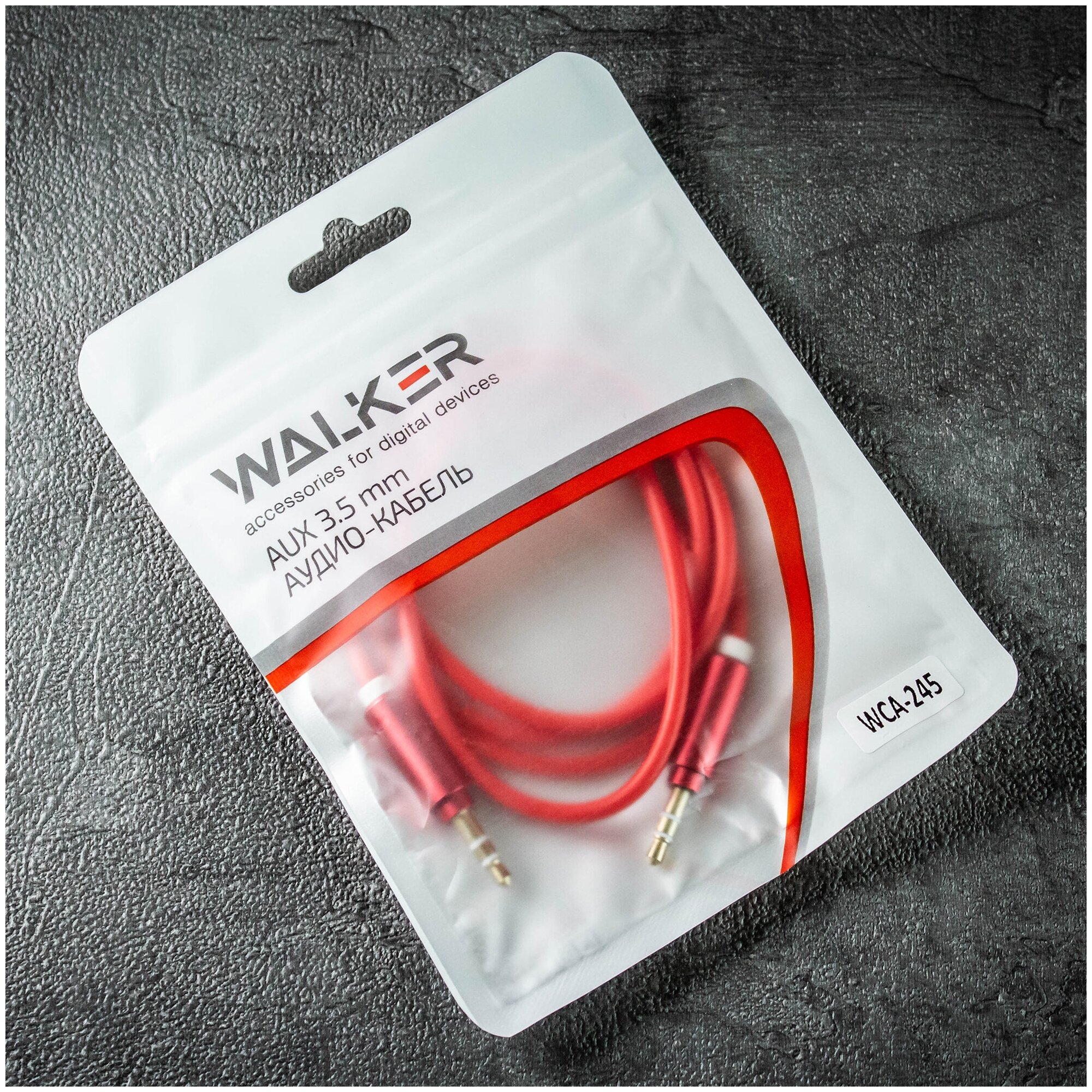 Кабель Jack 3.5мм - Jack 3.5мм Walker WCA-245 красный, 1м