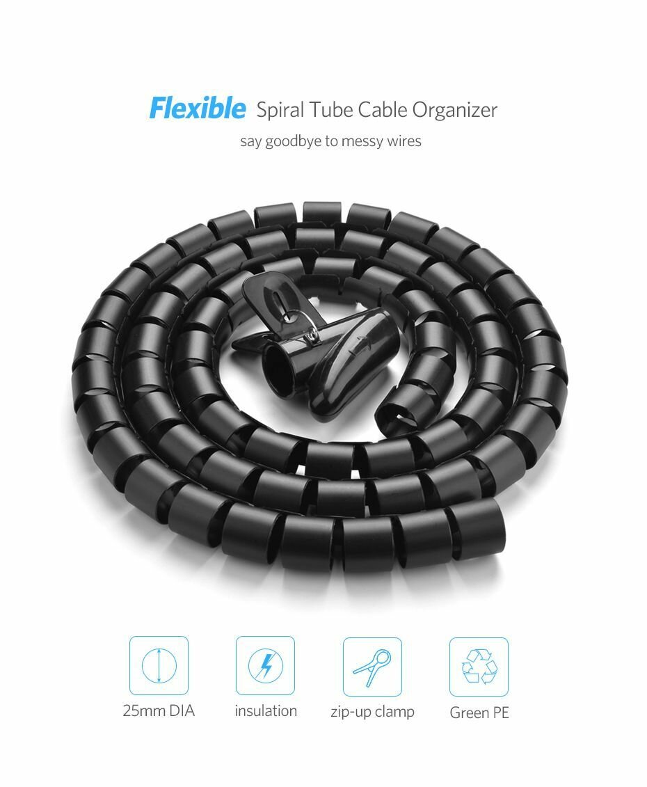 Купить Кабельный организатор UGREEN LP121 30818_ для проводов, диаметр: 25 мм, 1,5м, черный