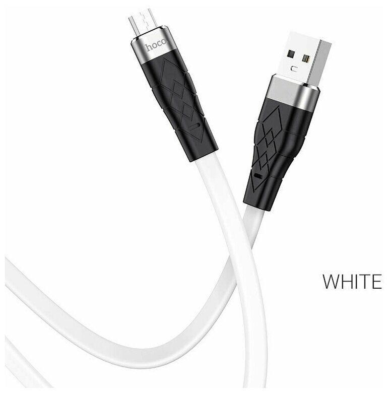 Usb Кабель-зарядка Micro Hoco X53 Angel 2.4A 1м плоский силиконовый белый