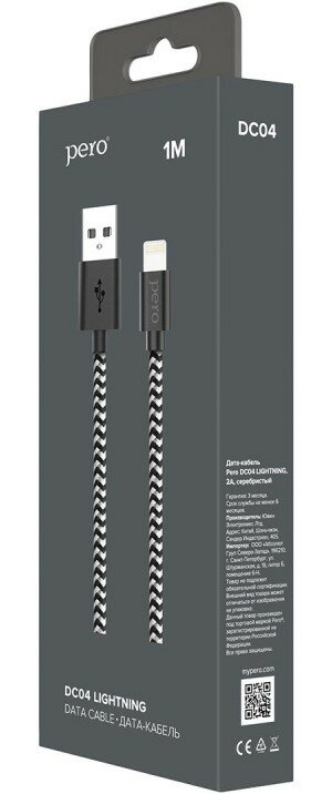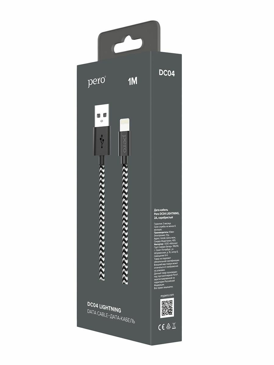 Купить Кабель USB PERO DC-04 8-pin Lightning, 2А, 1м, Silver-black