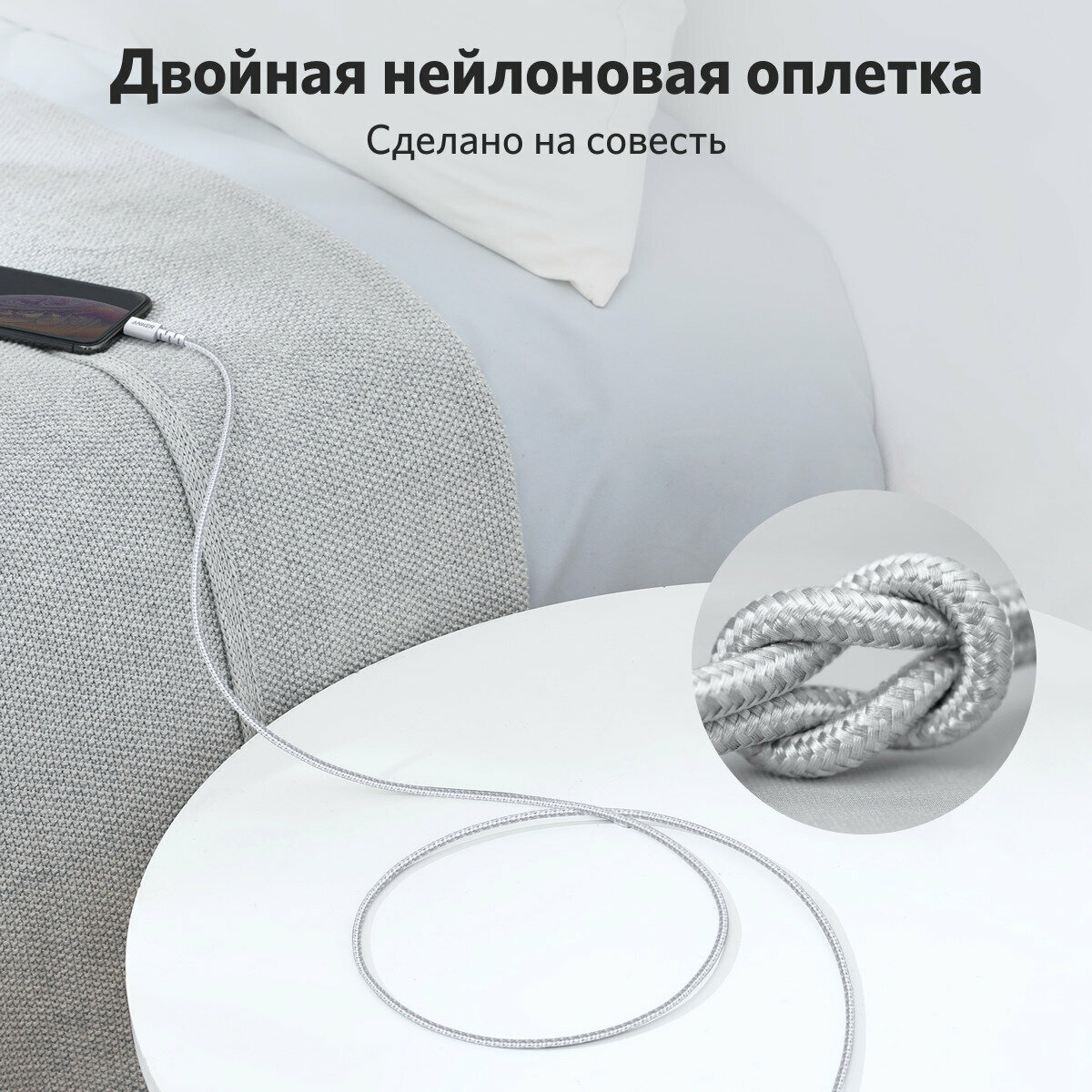 Кабель ANKER PLS+ USB-C->MFI Lightning A8617, 0.9 м, 1 шт., белый