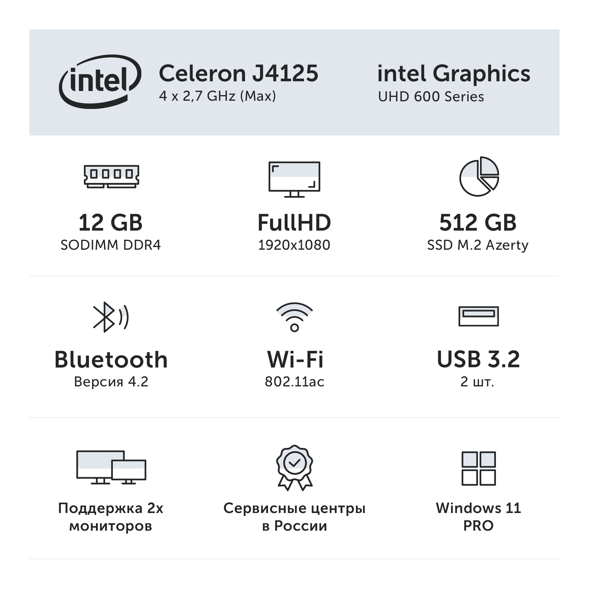 Купить Ноутбук Azerty AZ-1505 (15.6" IPS 1920x1080, Intel J4125 4x2.0GHz, 12Gb DDR4, 512Gb SSD)