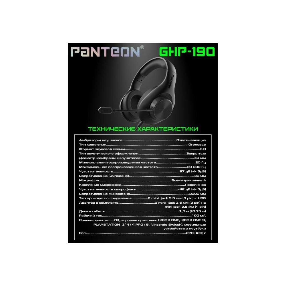 Игровые наушники С микрофоном PANTEON GHP-190 черные