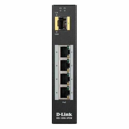 Коммутатор D-Link DIS-100G-5PSW Unmanaged Industrial Switch 4x1000Base-T PoE, 1x1000Base-X SFP, PoE Budget up to 120W, Surge 2KV, DIN-Rail,