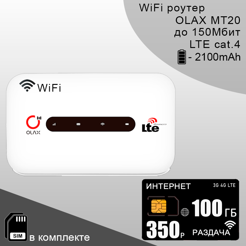 Комплект для интернета и раздачи в сети теле2 I Роутер OLAX MT20 I сим карта с тарифом 100ГБ за 350р/мес интересное: