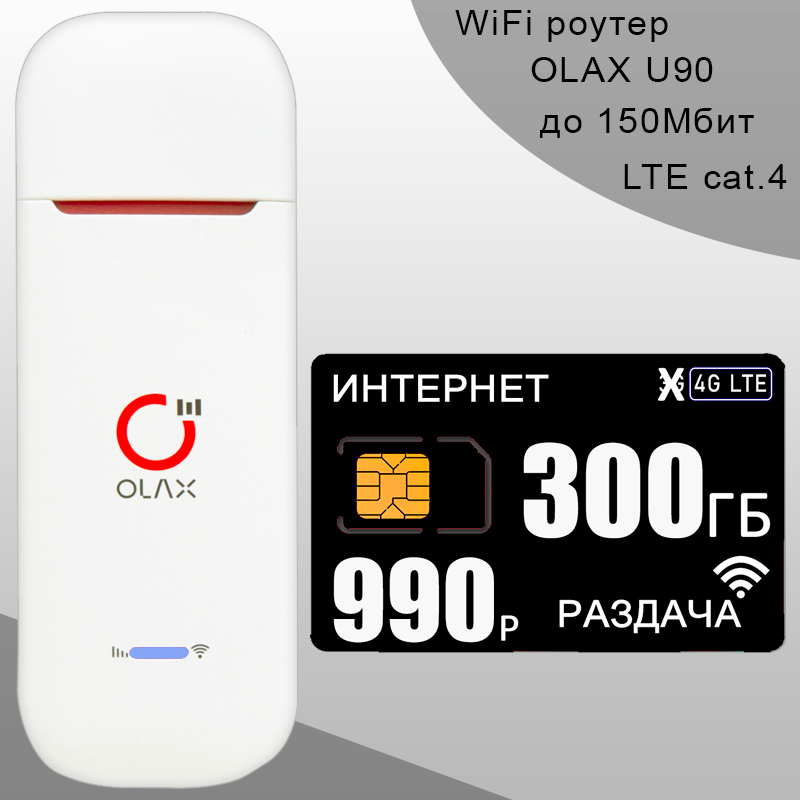 Купить Беспроводной 3G/4G/LTE модем OLAX U90 I сим карта с интернетом и раздачей, 300ГБ за 990р/мес