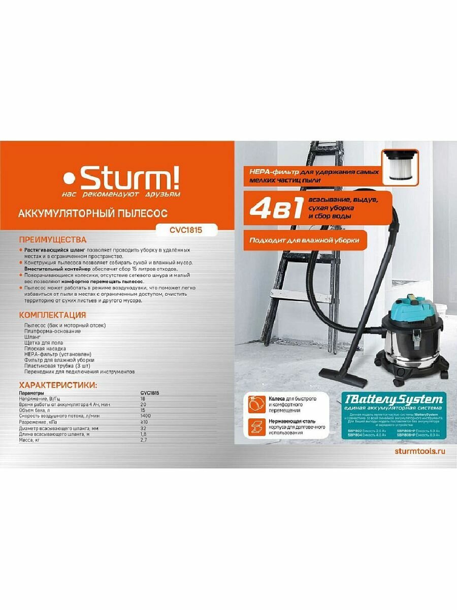Аккумуляторный пылесос Sturm! CVC1815 1BatterySystem без ЗУ и АКБ
