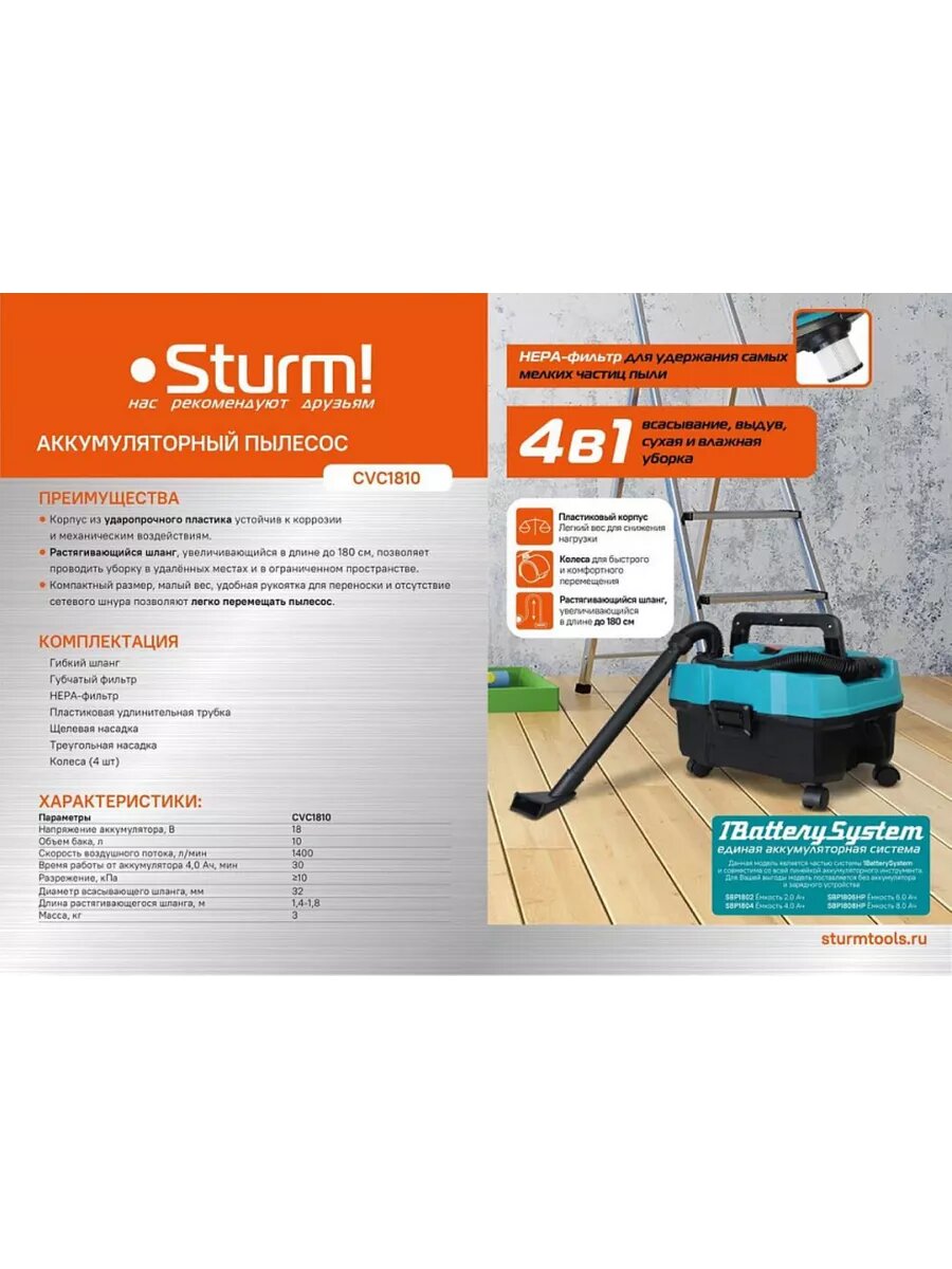 Аккумуляторный пылесос Sturm! CVC1815 1BatterySystem без ЗУ и АКБ