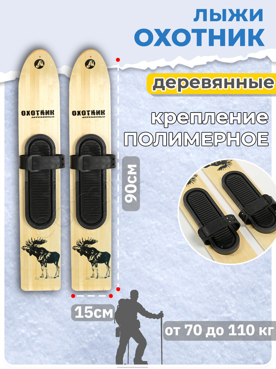 Комплект охотничьих лыж Маяк охотник с полимерным креплением 90х15 см, дерево