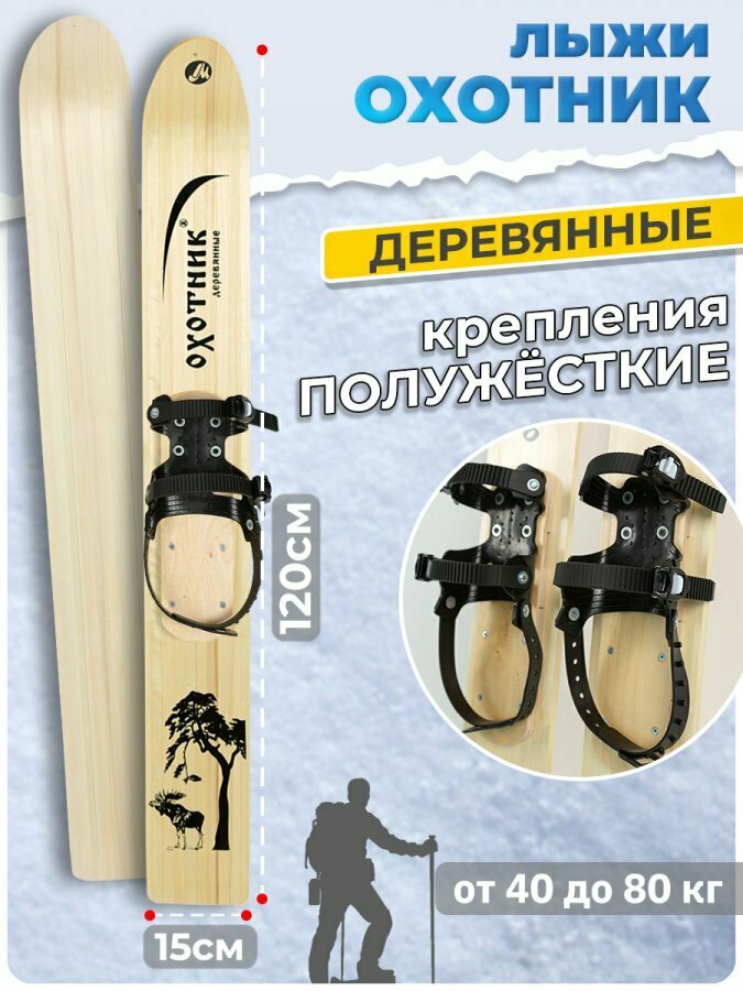 Лыжи охотничьи деревянные Маяк Охотник 120 х 15 см с полужестким креплением