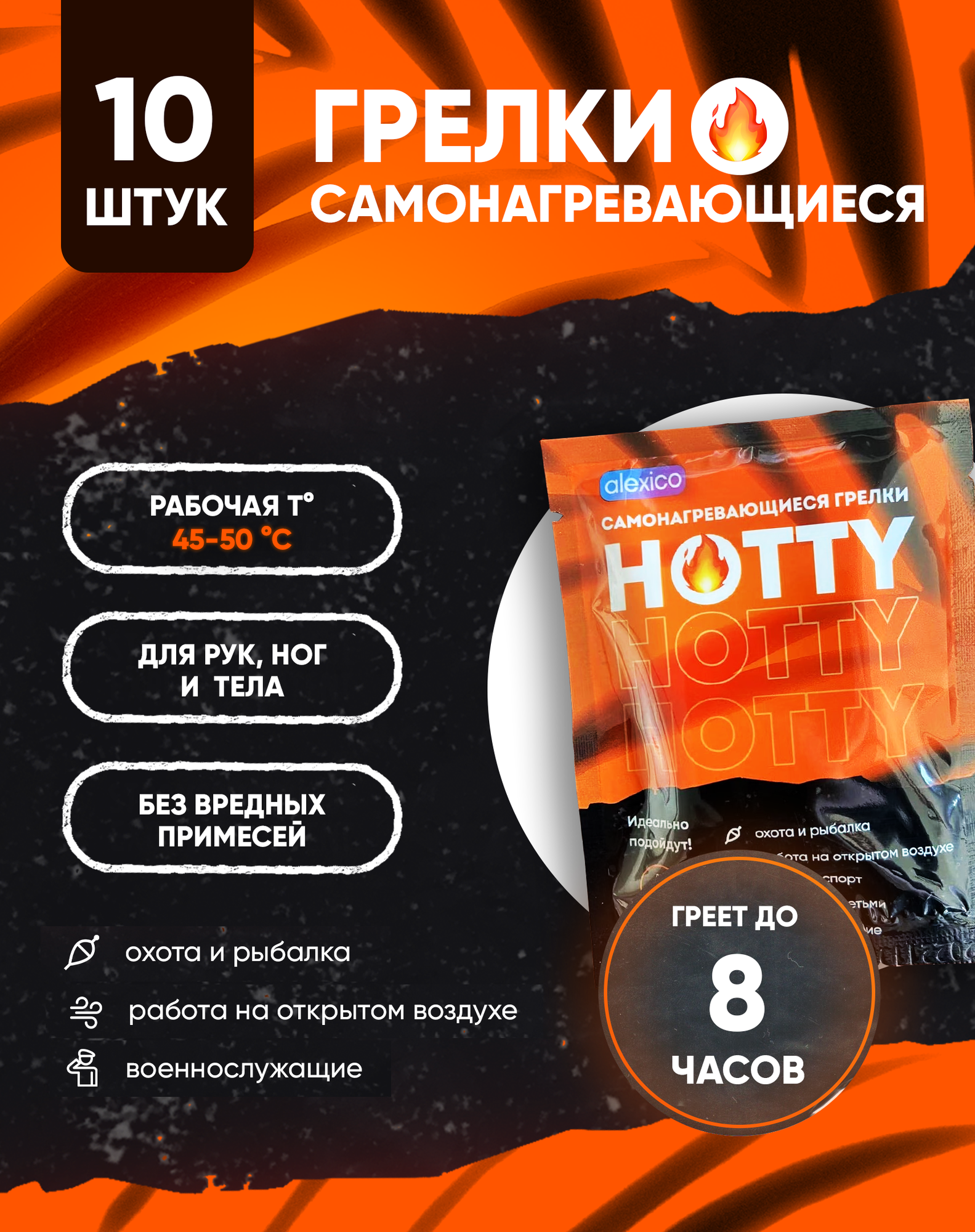 Грелки самонагревающиеся для рук, ног и тела / для туризма, спорта, отдыха, зимней рыбалки, охоты. Комплект из 10 штук / Hotty интересное: