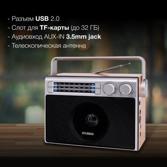 Радиоприемник Hyundai H-SRS105, коричневый интересное: