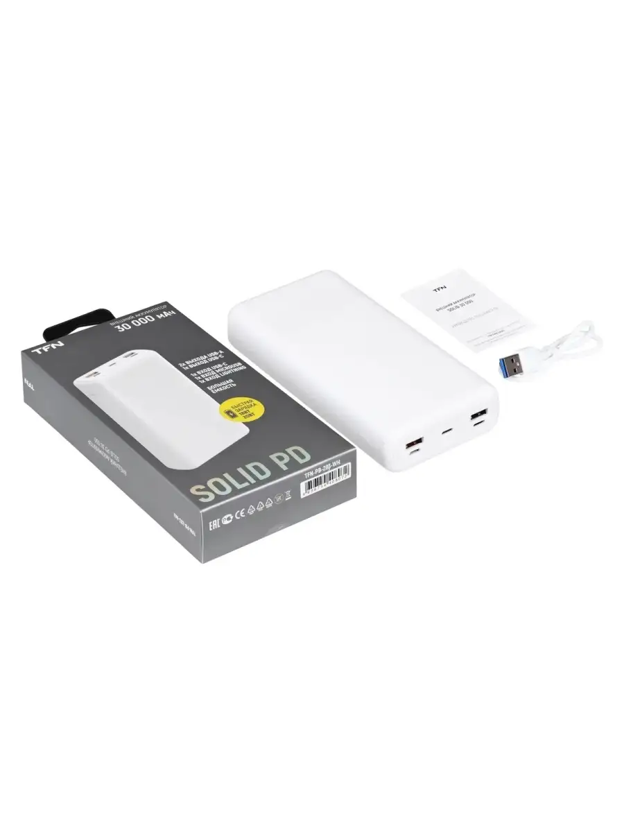 Внешний аккумулятор (Power Bank) TFN Solid PB-283, 30000мAч, белый [tfn-pb-283-wh]