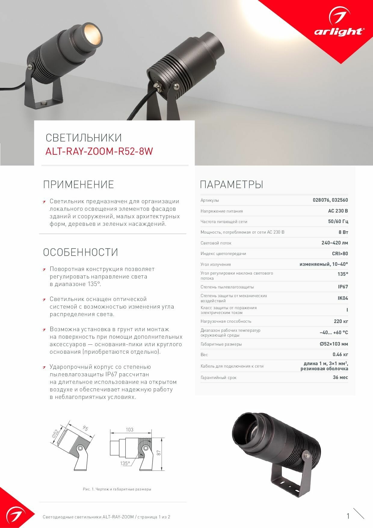 028076 Светильник ALT-RAY-ZOOM-R52-8W Warm3000 (DG, 10-40 deg, 230V) (ARL, IP67 Металл) интересное: