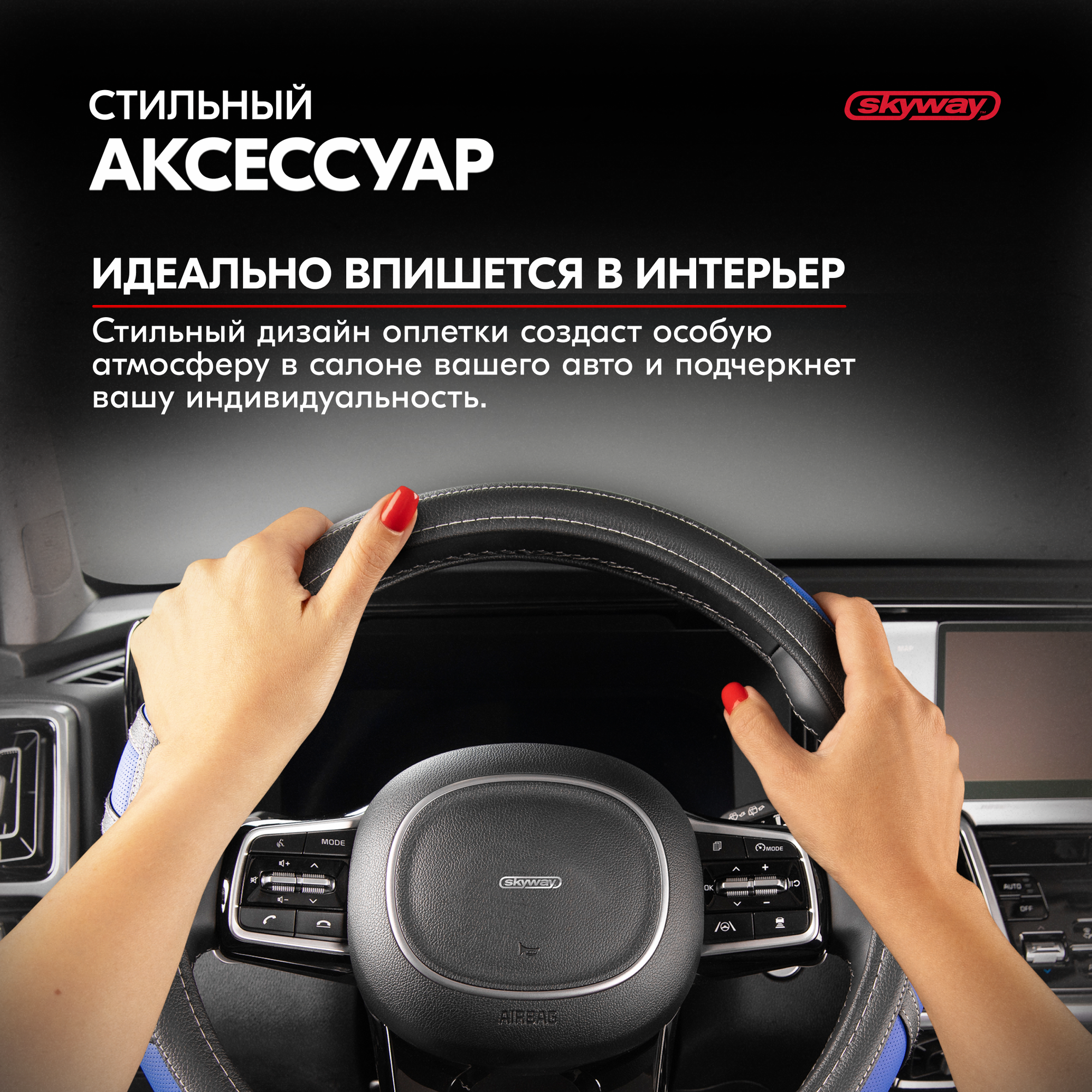 SKYWAY S01102065 Оплетка руля M 37-38см. экокожа Combo-2 Черно-Синяя спорт SKYWAY (S01102065)