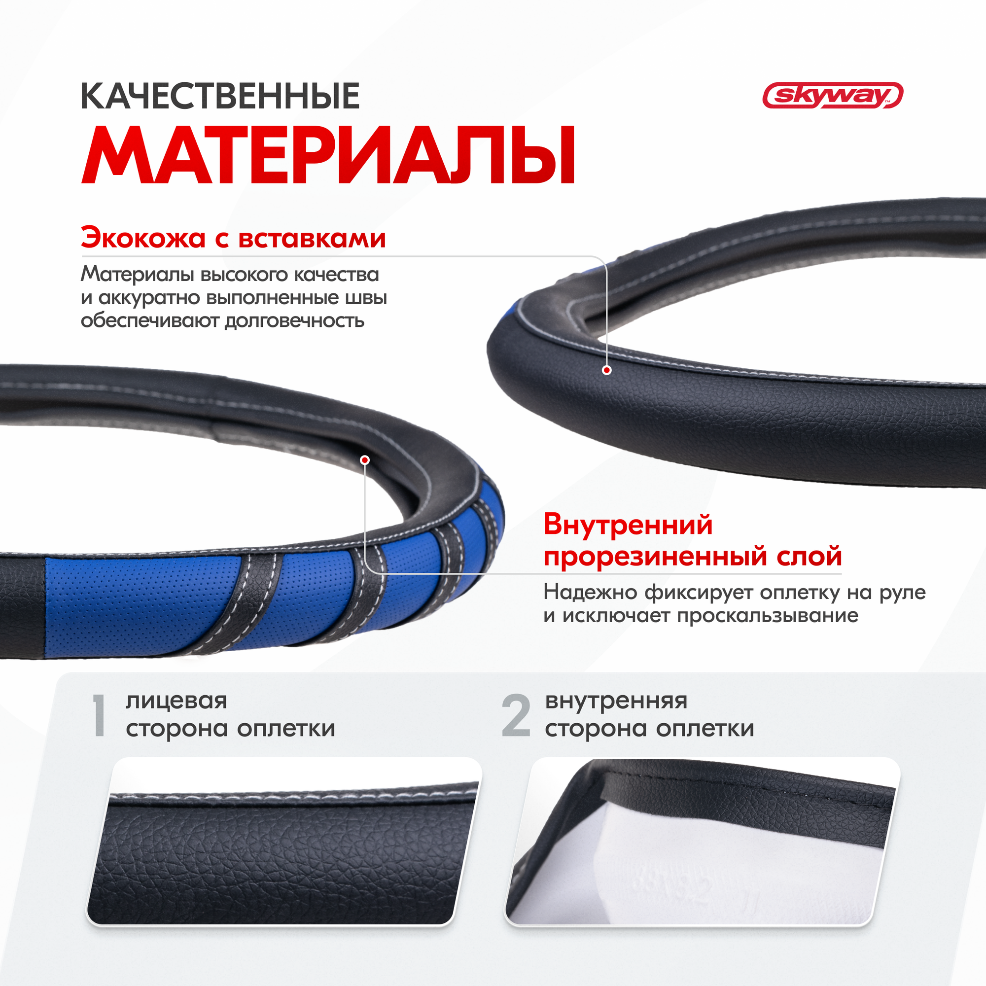 Оплетка руля M Skyway Eco Combo 2 экокожа черно-синяя SKYWAY S01102065 | цена за 1 шт