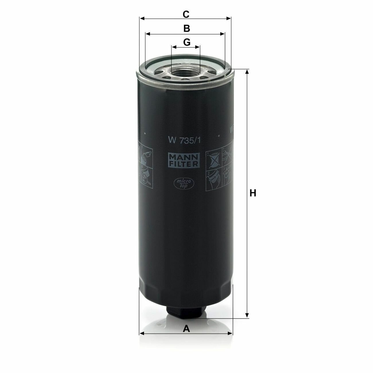 MANN-FILTER W 735/1 (0451103338 / 077115561 / 077115561C) фильтр масл Audi (Ауди) 100 c4 / a6 c4 4.2 92-97
