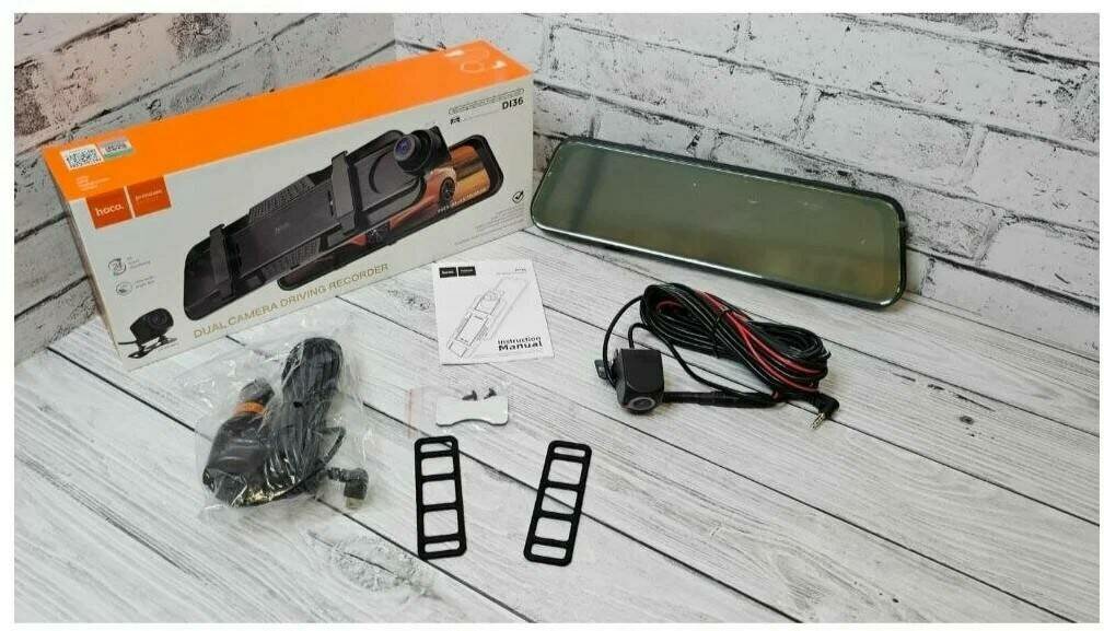 Видеорегистратор "Hoco"DI36 в зеркале с задней камерой и ночной съемкой / Сенсорный экран, авторегистратор зеркало FullHD 1080p интересное: