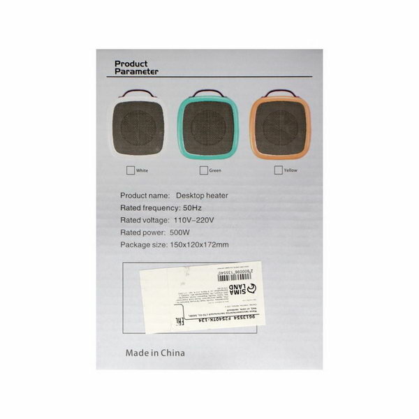 Купить Мини тепловентилятор настольный LTO-01, 500Вт, 4м2, от сети, зелёный